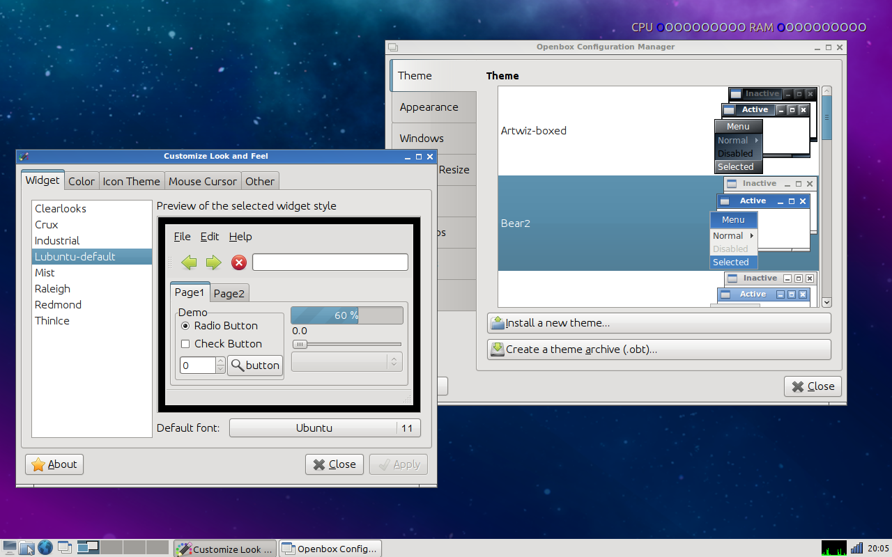 Lubuntu 10.10 fork with pure Openbox desktop + lxpanel.