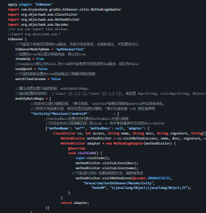 HiBeaver is a gradle plugin for java byte code manipulation and AOP design by modifying project byte code during build of the package, or modifying byte code within Jar independently. Combined with the powerful Java ASM bytecode modification tool and Gradle Transform API, HiBeaver can modify the Java bytecode contained in the project according to the user's configuration during the Android application compilation stage, so that users can only use Gradle Configure code injection and AOP design for bytecode, or add Hook nodes to the code in the Jar package that the project depends on. Starting from version 1.2.7, HiBeaver no longer depends on the Android compilation plug-in, and can run independently in the Gradle environment, modifying the code logic in the Jar/Aar file as you like. Beaver, or beaver, is a cute little animal that is busy every day building and decorating dams on the rivers he lives in.